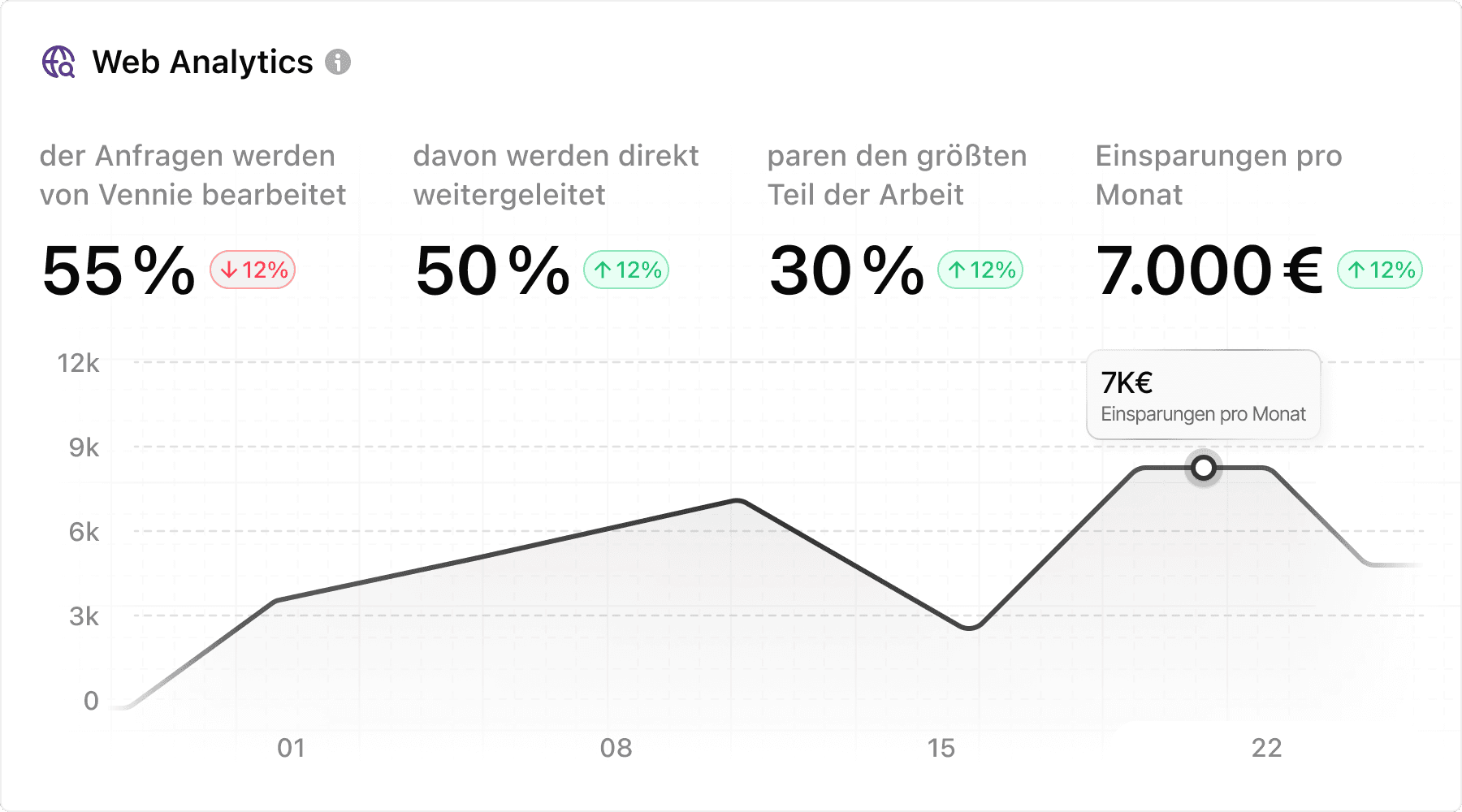 Die Einführung von vennie führte zu einer ersten Automatisierungsrate von rund 30–35 %, bei gleichbleibender Kundenzufriedenheit. Auch wenn viele Anfragen sehr speziell sind, konnten erste manuelle Prozesse erfolgreich automatisiert werden, was das Support-Team deutlich entlastet.
