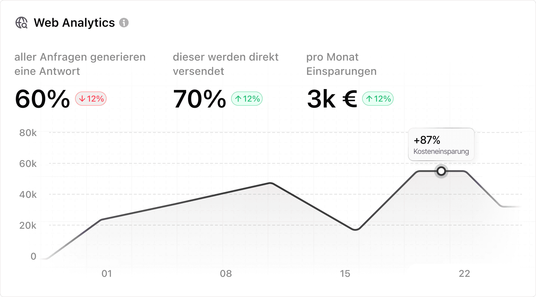 Bereits nach 1,5 Monaten automatisierte das System rund 60 % der Anfragen vollständig. Nach Abschluss der Implementierung lag die Automatisierungsrate bei über 70 %, bei gleichzeitig verkürzter Bearbeitungszeit und stabiler Kundenzufriedenheit.